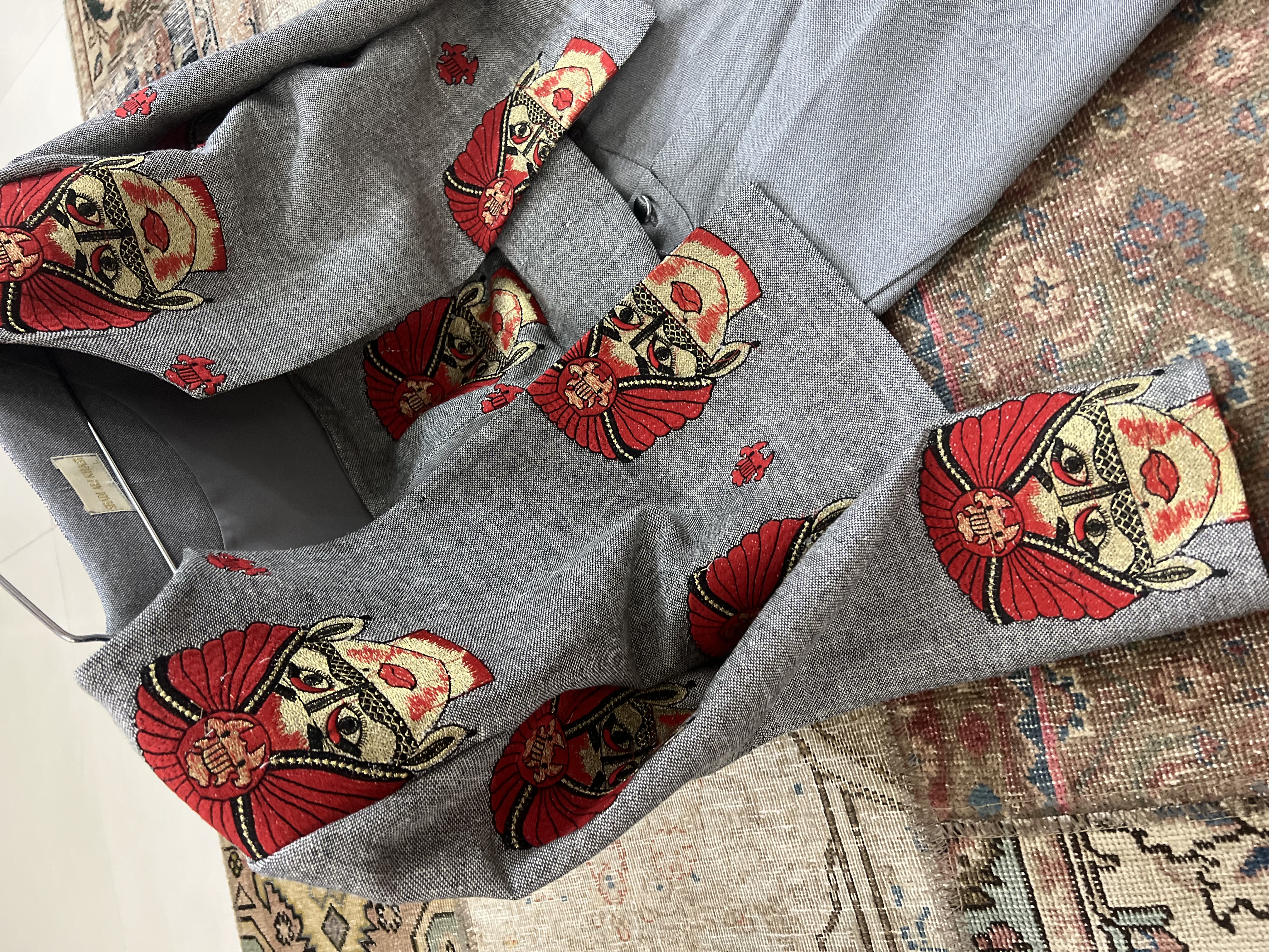 کت و شلوار لنین طرح دار همراه با تاپ دکلتهسایز ۴۴ ۴۶